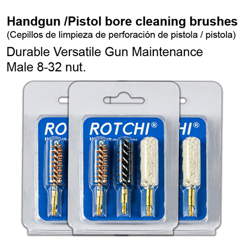 Ensemble 3 en 1 de brosses de nettoyage pour canon d'arme de poing, blister et carte