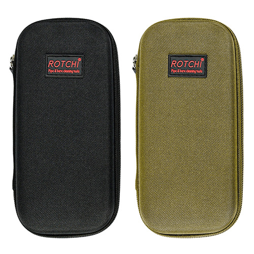 Etui en PVC enduit avec zip. Brosses en laiton, vadrouilles en coton, brosses en nylon, jags en laiton,