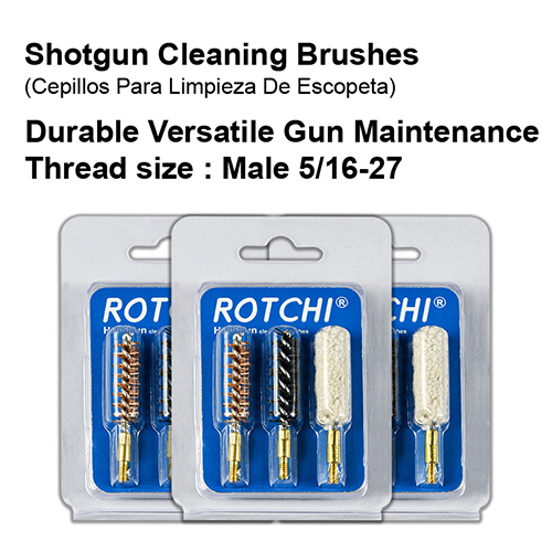 Ensemble 3 en 1 de brosses de nettoyage pour canon de fusil de chasse, blister et carte paquet. Tailles disponibles : 12G, 16G, 20G, 410