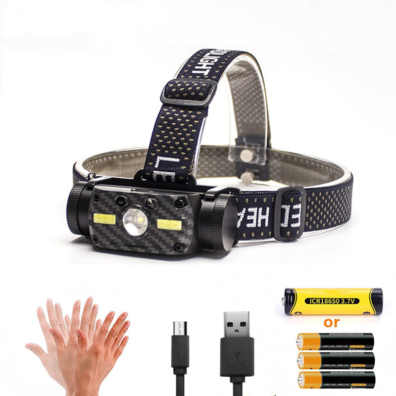 Lampe frontale LED étanche avec capteur intelligent, 10 modes de chargement USB