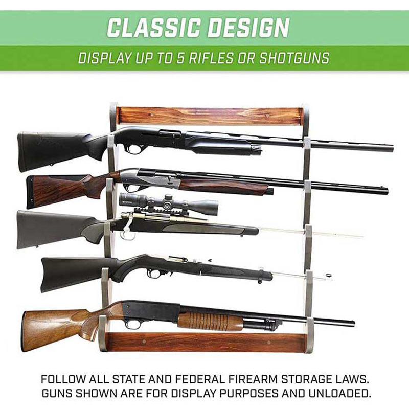 GoSports Outdoors Présentoir mural pour armes à feu avec teinture pour bois de qualité supérieure – Peut contenir 5 fusils ou fusils de chasse |